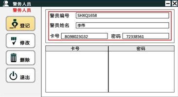 2)警務人員管理 點“登記”項,系統會自動提示您登錄該人員的各類信息。
