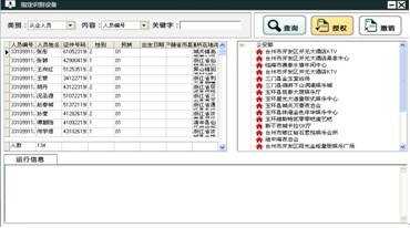 3)人員信息搜索 填寫內容,點“查詢”項,系統會自動檢索到該人員。 4)指定設備 在右側框選中該場所下的設備,點擊“授權”項,給該人員指定所對應的設備,指定成功,設備將自動與考勤機通訊,實現實時更新。