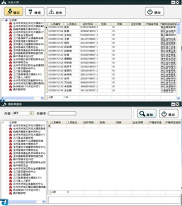 合肥環宇智能有限公司開發的“娛樂場所從業人員實名制管理系統” ,是利用當今先進的智能識別技術,根據娛樂場所的行業特點和娛樂場所行業管理部門的具體管理要求,特別量身定制的大型實時信息管理系統。本系統平臺基于B/S結構,具備完整的信息采集、處理和使用功能,管理部門既可以掌握各個場所和從業人員的詳細真實的靜態信息,又可以掌握從業人員的實時動態信息,從而實現對娛樂場所及從業人員的監督管理?蓪崿F無線通訊網絡進行數據、 圖像的“二網合一”,使公安機關能夠及時了解娛樂場所的動態信息,及時掌握從業人員的工作活動軌跡,提高從業人員備案核查工作效率,捕捉犯罪分子,提高治安管理的水平,更好的維護社會治安穩定,建立監督檢查的長效機制。 二 系統構成 該系統由4部分組成:無線終端、代理服務器、應用服務器和數據庫服務器; 1. 無線終端: 對娛樂場所從業人員進行身份識別,協查通報查詢和回復,識別記錄等的查詢,通過無線通訊方式傳輸數據; 2. 應用服務器: 從數據庫中讀取數據下發到無線終端,把從無線終端中采集的數據寫入數據庫中; 3. 代理服務器: 無線終端的連接點,負責對應用服務器和無線終端之間的數據包轉發; 4. 數據庫服務器: 存儲從業人員信息,黑名單信息,場所信息,協查通報,識別記錄,協查通報回復等(使用原有系統的oracle數據庫); 三 功能特點 在從業人員上下班考勤時,考勤信息會記錄在本地考勤系統內。在考勤的同時,攝像頭拍攝人員的圖像信息,并與考勤機的考勤記錄自動疊加后記錄在系統數據庫內,備日后檢查。數據庫管理中心,在接收到各場所的實時考勤信息后,根據管理部門要求的數據格式進行匯總整理和加密,然后可以定時,也可以實時打包發送至管理部門備查,或由管理部門主動到中心數據庫查閱相關信息。 本系統可采用指紋識別方式,從業人員的指紋信息將錄入系統中,這也為公安機關取證提供了強大有效的數據庫。如從業人員中存在公安部門所通緝犯罪人員、或已在公安部門備案或收集到的高危人群,公安部門會第一時間發現并實施抓捕。