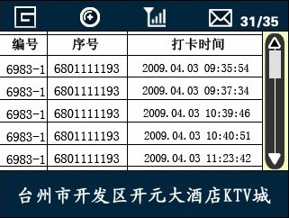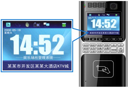 2、 待機界面:終端待機時顯示系統時間和本場所名稱,并在屏幕上顯示連接狀態,是否有未讀通報等信息。通過設置可以選擇待機界面顯示時間或播放公益廣告(MPEG)。 3、 刷卡:刷卡后顯示刷卡人姓名,刷卡時間、從業人員IC卡號等信息以及檔案照片和拍照照片。