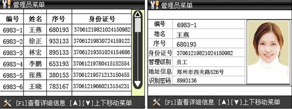 7、 識別記錄統計:管理人員登錄后,按F3可顯示近30日內刷卡記錄統計列表,按上下鍵選中某日即可顯示當日刷卡記錄詳細列表。 8、 協查通報閱讀:終端在待機界面,按下F2即可顯示協查通報列表,按上下鍵選中某條協查通報,確認后即可閱讀。 9、 協查通報管理員閱讀和回復:管理人員登錄后,查看協查通報,閱讀后按數字鍵即可回復該協查通報。(數字鍵可自定義)