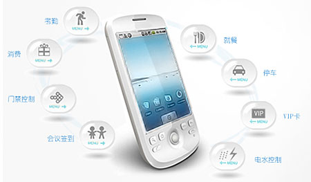手機一卡通技術完成餐飲、商店、機房等的消費功能。