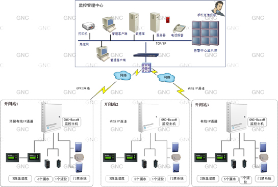 針對電力行業無人值守變電站監控中存在的這些問題,本公司為實現多區域集中管理,統一監控并迅速做出反應,降低維護成本,提高運行工作質量等改革目標,推出全新的基于自主知識產權的變電站無線監控整體解決方案——GNC變電站無線監控系統。
