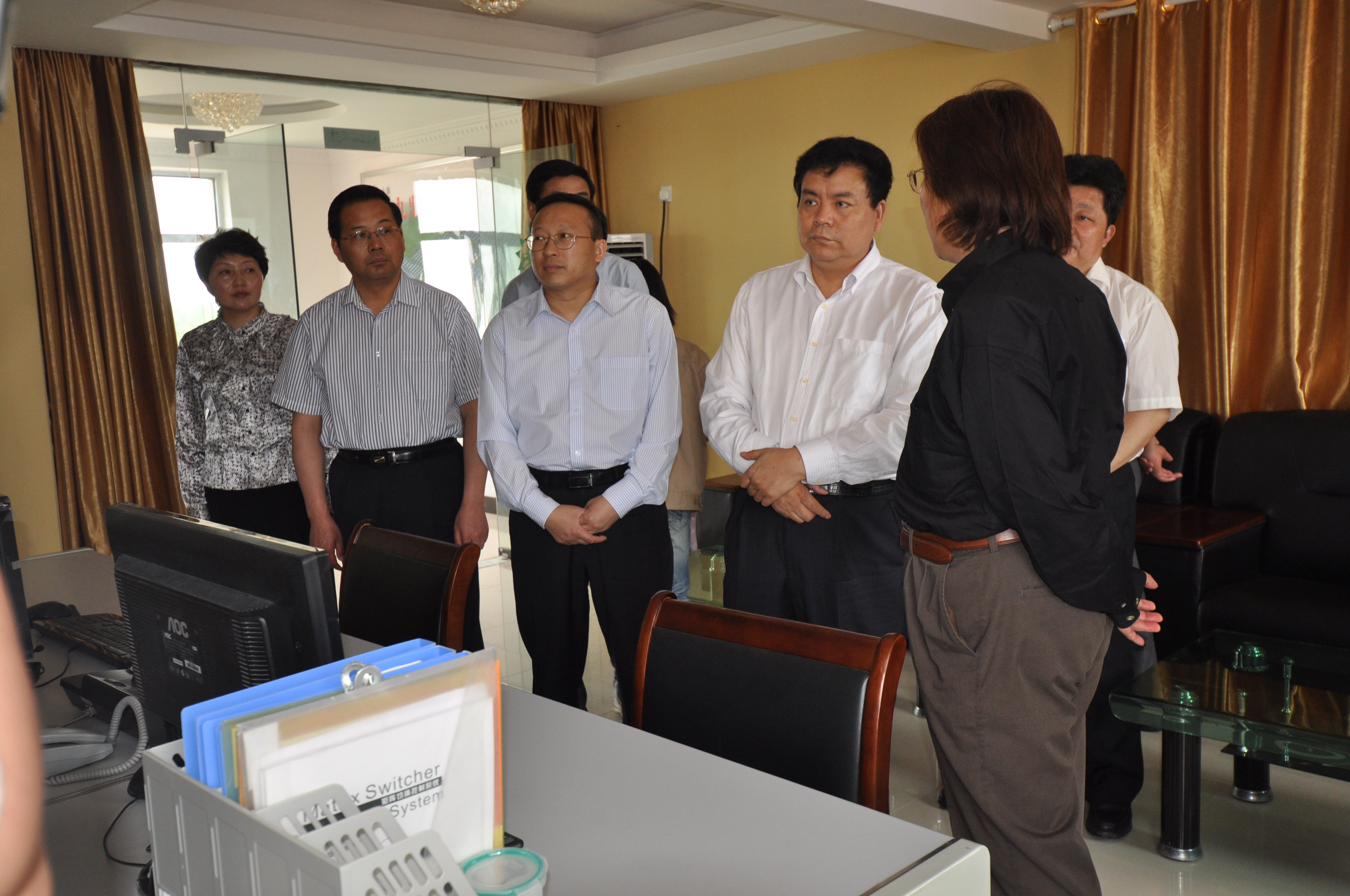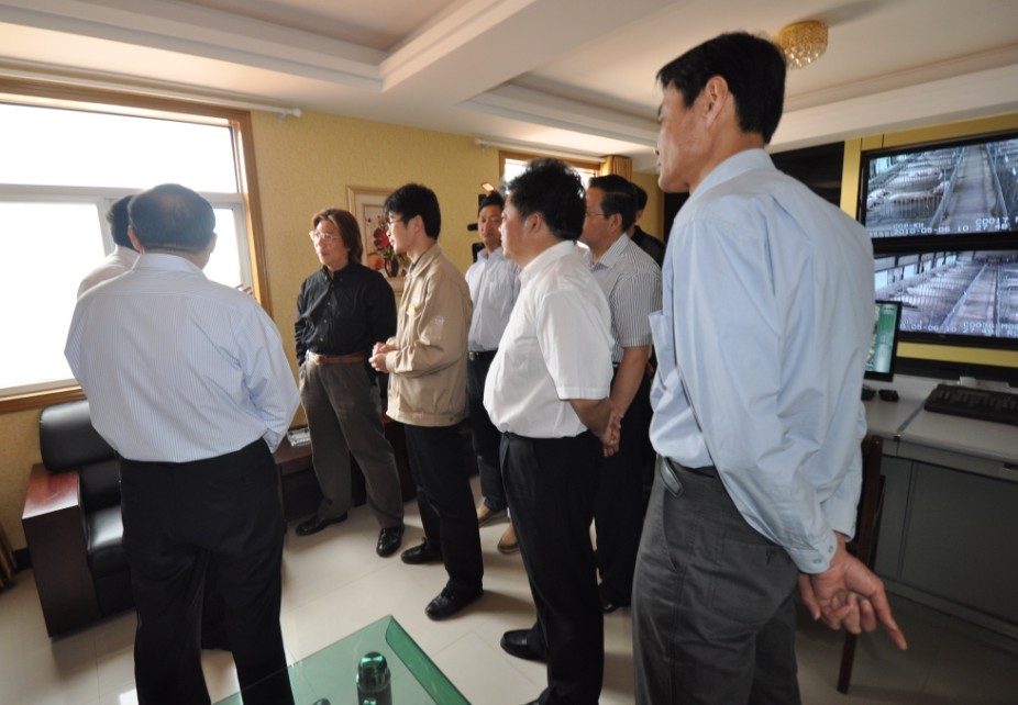 安徽省省委常委趙樹叢副省長、六安市市委常委張韶春市長、市政府楊光祥副市長等領導在安徽省農委副主任、六安市裕安區區委高斌書記、區政府秦遠松副區長等的陪同下,于5月6日下午專程來九鼎牧業視察工作。公司接待人員向來訪的領導們詳細介紹了我公司生產、建設狀況,以及未來公司發展規劃等。我公司技術人員汪宋寶通過演示監控圖像對其講解,趙樹叢副省長、張韶春市長等領導詳細詢問了解豬場防疫工作、技術設備、生豬市場價格等方面的情況,對公司工作給予了充分的肯定,并要求當地政府部門應積極配合支持九鼎公司的項目建設工作,盡快落實種植園區用地等需進一步明確的工作,同時希望九鼎更好地利用當地優勢資源、運用科學養殖技術,抓住當前有利時機,大力發展農業產業化規;a,不斷提高農業產業化經營水平,把公司做得更大更強。
